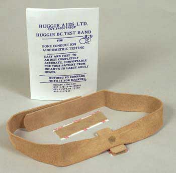 The Huggie® Headband is an adjustable headband which holds the Bone Conductor firmly in place. Thus making testing for Bone Conduction less stressful, when moving the Bone Conductor from the center of the forehead to the Mastoid.